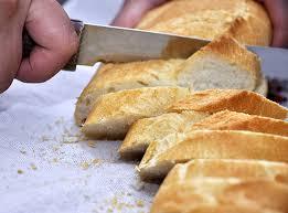 Corte o seu pão às fatias, com cerca de 4 cm cada uma.