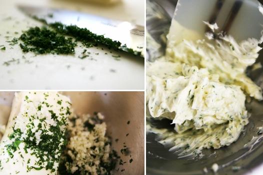 Coloque em uma vasilha o alho e a salsinha e, com a ajuda de um processador ou mixer, triture-os. Depois incorpore a manteiga e misture tudo muito bem.