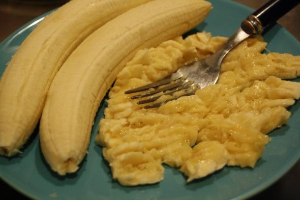 Para fazer o pão de banana, comece por descascar as bananas e esmagá-las com a ajuda de um garfo até obter uma papa. Coloque um pouco do suco de limão em cima e reserve.