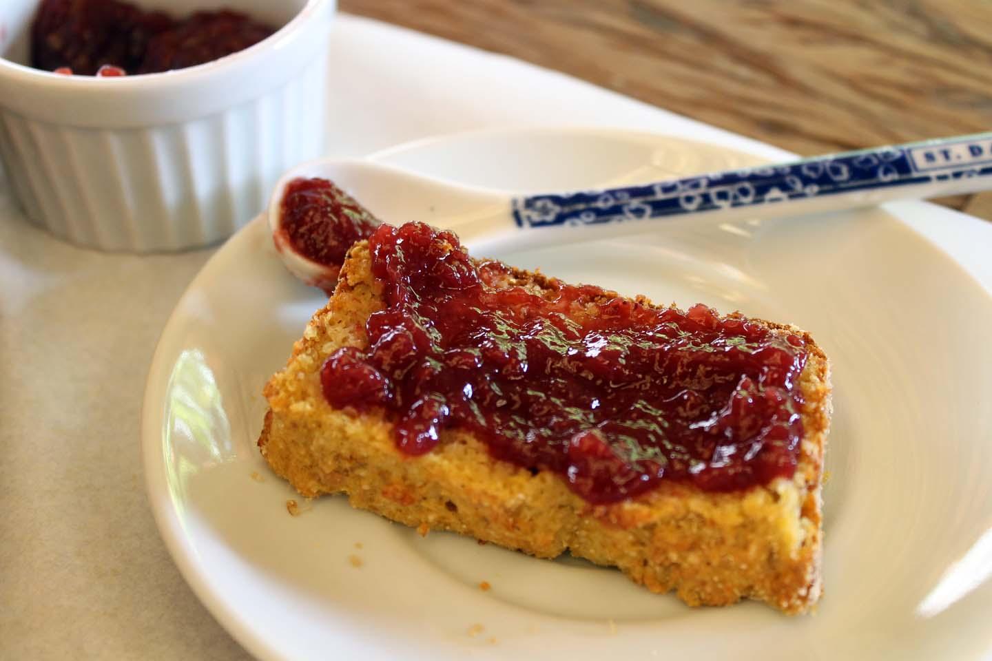 Depois desenforme e deixe esfriar. Corte em fatias e sirva-as acompanhadas com geleia de framboesa, banana, marmelo, morango ou outra da sua preferência.