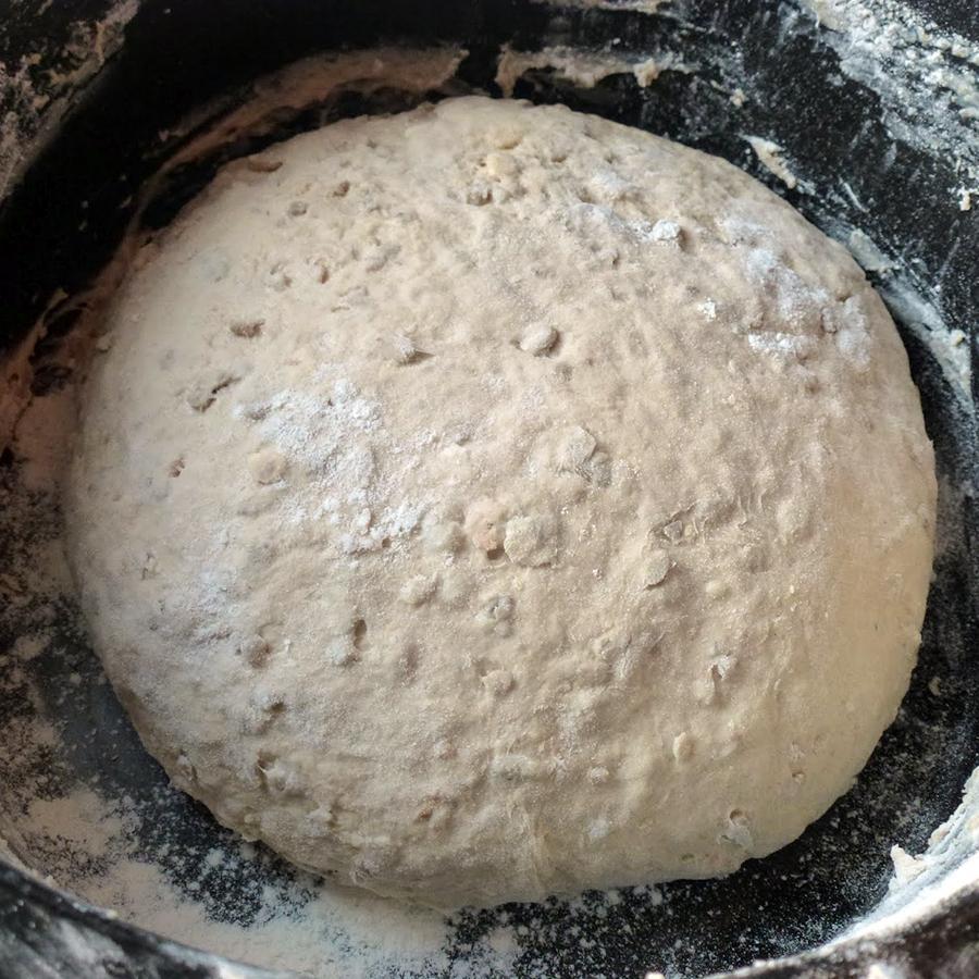 Forme uma bola de massa, cubra a massa com um pano limpo e deixe-a fermentar durante uma hora ou até que o seu tamanho dobre. Passado este tempo, unte as mãos com farinha e polvilhe um pouco na sua bancada de trabalho e volte a amassar a massa para retirar o excesso de gás.