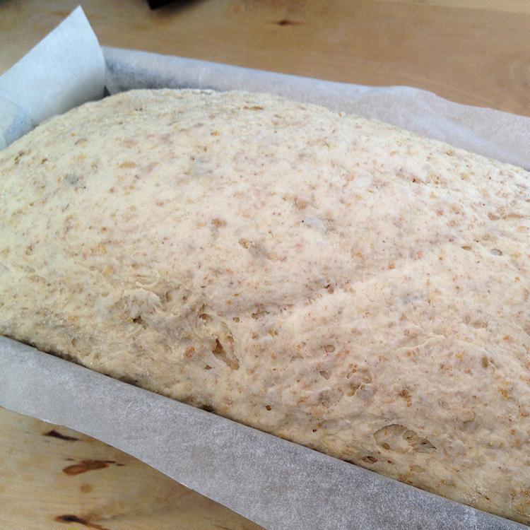 Modele-a em formato de pão ou coloque-a no molde de pão previamente untado, tampe a massa de novo e volte a deixá-la durante 30 minutos para que fermente. Pré-aqueça o forno a 230ºC.