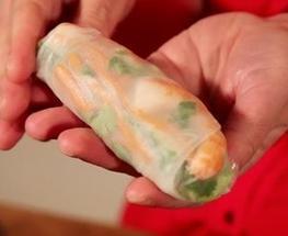 O papel de arroz está úmido e mais macio e deve ser utilizado com cuidado. Recheia-se dando a forma de rolo, quadrado, leque, ou utilizando-o sozinho como suporte.