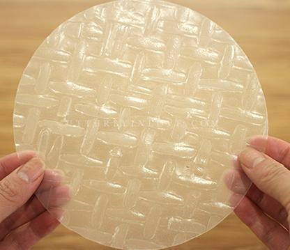 O papel de arroz deve ser colocado de molho em água fria (na água quente pode se dissolver) entre 15 a 20 segundos antes de estar preparado para ser manipulado e usado na cozinha.