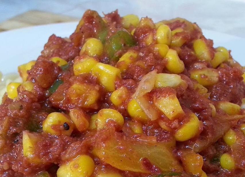 Quando o molho ficar suculento, junte as latas de milho e ervilha (escorridos) e volte a mexer tudo muito bem. O recheio está pronto: deixe esfriar e reserve.