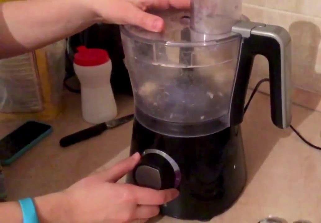 Para fazer a massa do pastelão de frango, coloque os ingredientes no liquidificador. A ordem deve ser: óleo, ovos, farinha, leite ou água. Bata esses ingredientes.