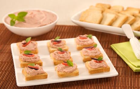 Os patês são um preparado cremoso que se usa, geralmente, como entradas, servido com tostinhas ou com pão.