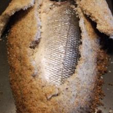 O sal sairá facilmente, como uma só camada. O peixe estará muito suculento, pois o sal faz com este retenha todo o seu suco e sabor.
