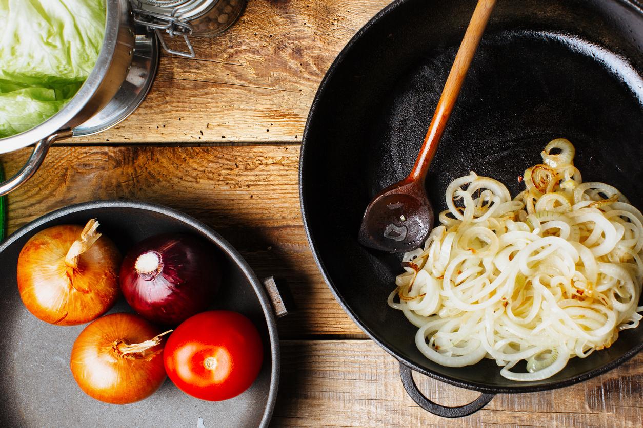 O fogo deve estar a nível médio para que a cebola e o alho cozinhem sem chegar a queimar; vá salteando até que a cebola esteja bem tenra; este processo costuma durar uns 15 minutos em fogo lento, aproximadamente. Assim que a cebola estiver pronta, terá que verter uma colher de vinagre do bom e saltear todos os ingredientes por aproximadamente 1 minuto.