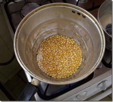 Comece por colocar na panela uma porção de óleo - a medida que recomendamos é uma colher de óleo para cada 200 gramas de milho.