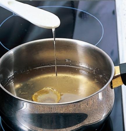 Na mesma panela, ou usando uma limpa, coloque o açúcar e a água e ligue o fogo médio para conseguir uma calda mole em ponto de fio (demorará cerca de 20 minutos).