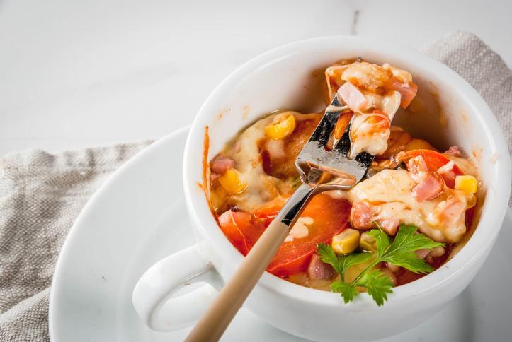 Com certeza já aconteceu de você sentir uma vontade repentina de comer pizza, mas a preguiça de fazer uma em casa ou de pedir para entregar te fizeram mudar de ideia. Com esta receita de pizza de caneca, porém, você vai conseguir preparar a sua porção individual de maneira rápida e prática. De maneira simples, sua pizza vai ficar pronta em apenas dois minutos - na quantidade ideal para você.