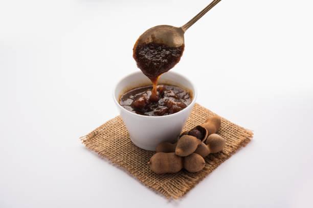 - Geleias, molhos e temperos: você pode aproveitar o sabor agridoce de um molho de tamarindo para enriquecer carnes de todo tipo e outros alimentos. Na gastronomia mexicana, ele é geralmente combinado com sabores picantes encontrados em diferentes tipos de pimentas, como chipotle, chile de árbol e habanero (um tipo de pimenta malagueta). Um molho muito popular na comida mexicana é o chamoy, cuja principal fruta seca é o tamarindo. Dessa forma, você pode usar a polpa de tamarindo para fazer maçãs com chamoy, por exemplo.
