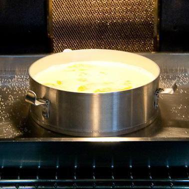 Jogue o pudim na forma(s) e introduza na bandeja do forno quando a água estiver fervendo. Assim, cozinharemos em banho-maria durante 50 minutos. Após esse tempo, faça o teste do palito para comprovar que está pronto ou se precisa de mais alguns minutos no forno.