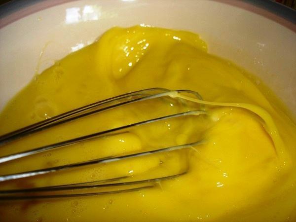 Pegue em um recipiente e bata os ovos de forma enérgica com a ajuda de um batedor manual. Agora, só tem que misturar os ovos batidos com a espécie de compota de maçã que preparou anteriormente, mexa até que os ingredientes tenham se integrado completamente.