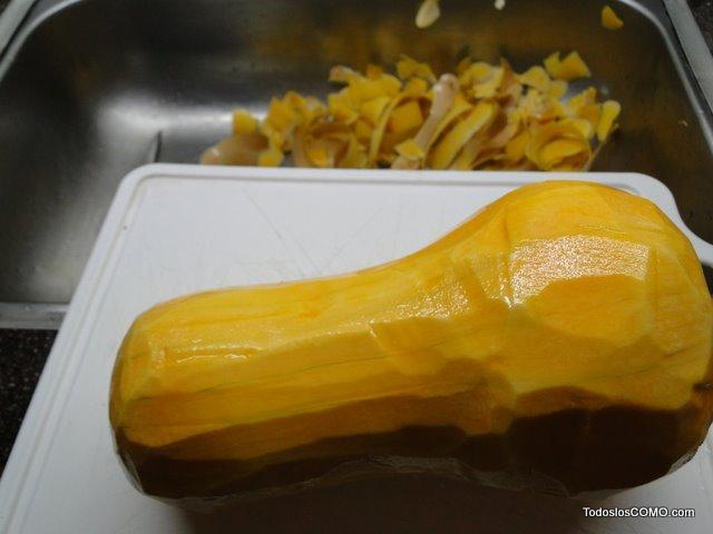 Depois de descascar a abóbora, passe-a novamente por água para retirar qualquer sujeira que possa ter pegado.