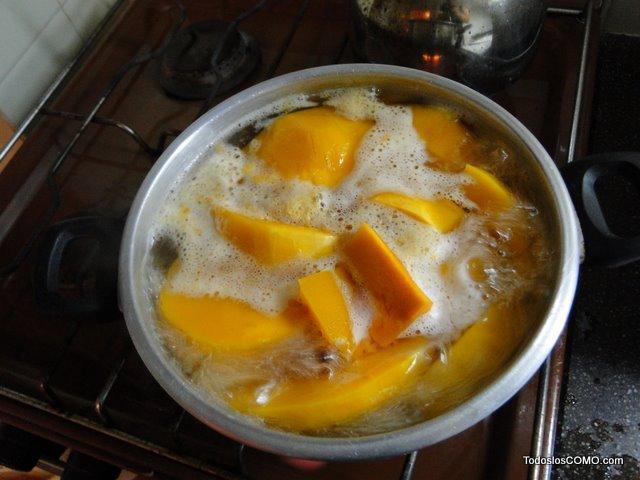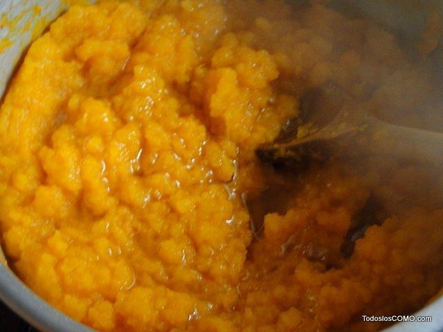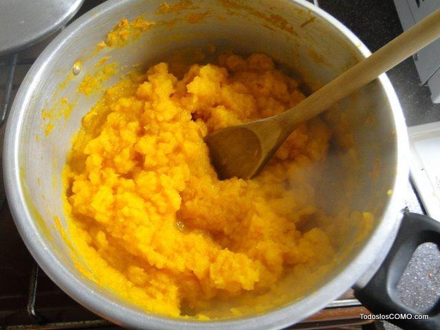 Após fazer isso, poderá notar como a abóbora soltará alguma água. Para a eliminar, deverá ligar o fogo médio novamente e deixar até que a água evapore.