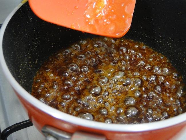 Quando o quebra queixo fizer bastantes bolhas de ar e desgrudar da panela ele está no ponto, pode desligar o lume.