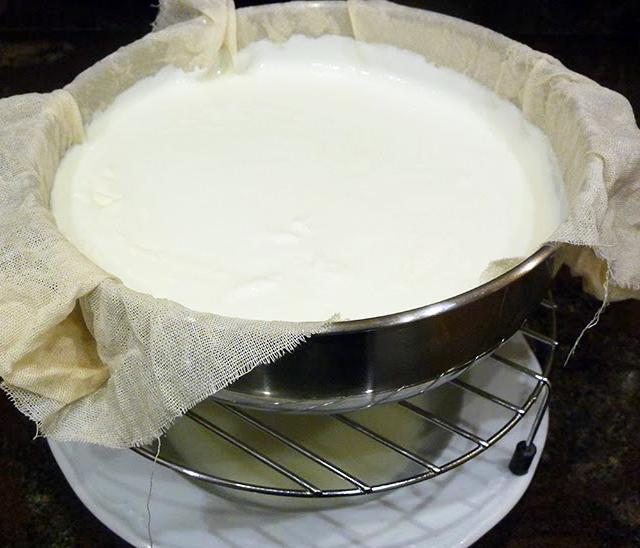 Demora à volta de 10 minutos em granular completamente, quando for assim, forre o interior de uma peneira com gaze ou tecido de algodão e com uma colher grande coloque a mistura dentro. Cubra toda a mistura com a gaze e deixe repousar durante 12 horas. Assim, todo o líquido irá embora deixando só o queijo cremoso.