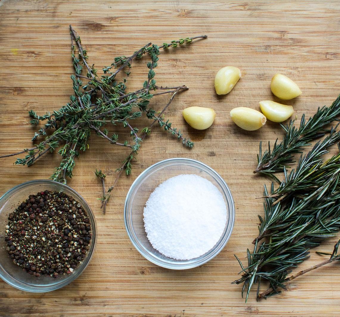 Junte tudo em uma tigela e rale um pouco de noz moscada, juntando à mistura de ervas.