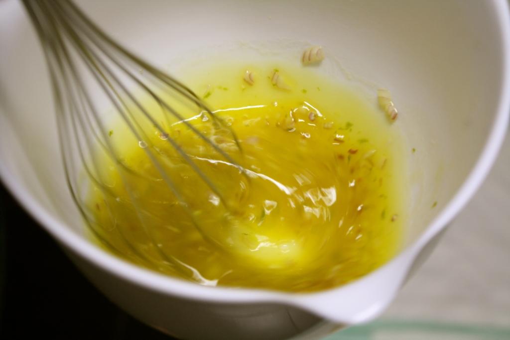 Primeiro prepare o molho, coloque todos os ingrediente numa tigelinha e misture com um fouet, quando a mistura estiver homogênea coloque na geladeira para apurar.