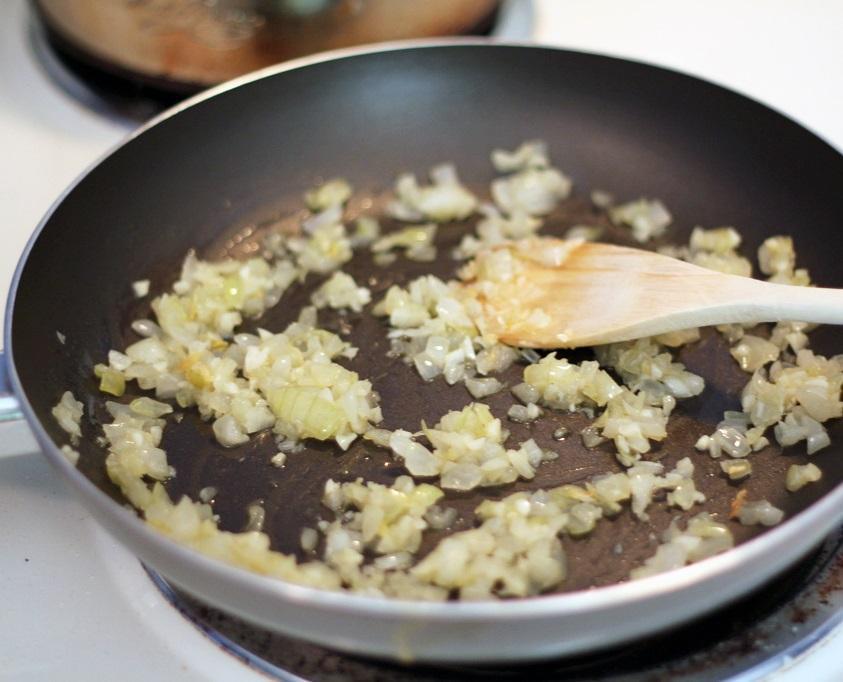 A primeira coisa que deve fazer é picar o dente de alho e a cebola com uma faca, para refogar tudo posteriormente em uma panela com uma boa quantidade de azeite de oliva virgem extra. Adicione uma pitada de sal e espere que ambos os ingredientes amoleçam.
