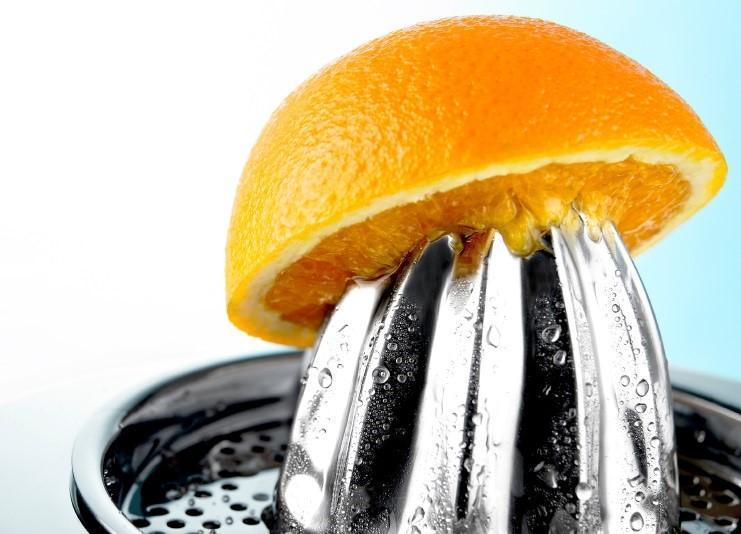 A seguir, corte as laranjas pela metade e com a ajuda de um espremedor extraia todo o seu suco natural. Jogue na panela e, a fogo suave, aguarde até ferver. Quando tiver atingido o ponto máximo de ebulição, baixe o fogo e prove para temperar com sal e pimenta a gosto.