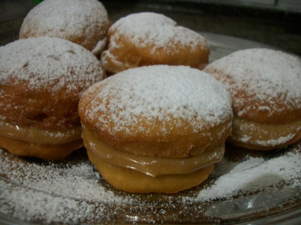 Quando os sonhos estiverem sequinhos, sem grandes vestígios de óleo e não muito quentes dê um golpe lateral, recheie com o doce de leite.