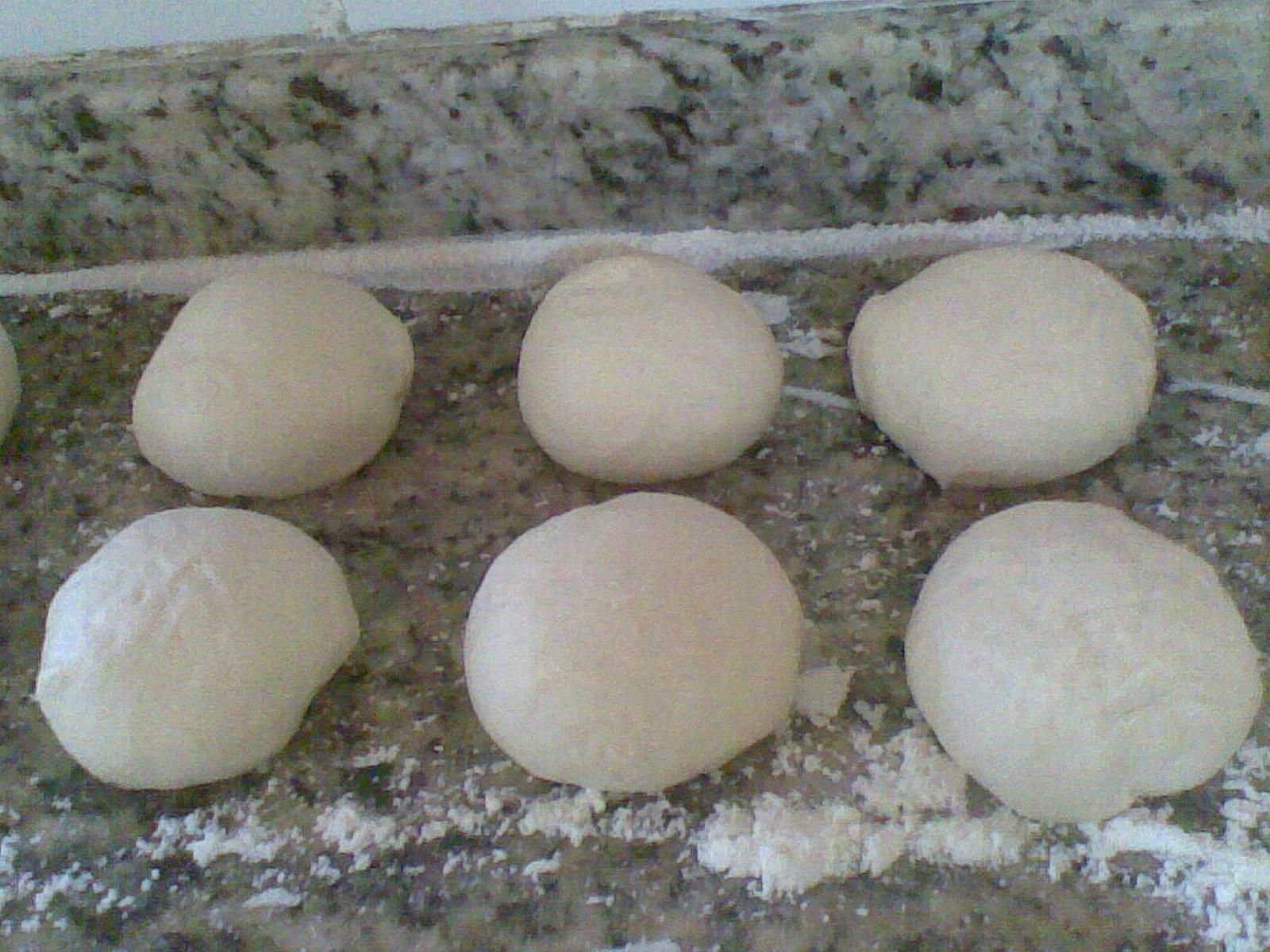 A parte mais demorada vem agora, coloque cada bolinha numa assadeira previamente polvilhada com farinha e cubra tudo com um paninho de cozinha limpo. Deixe repousar 40 minutos até dobrar o tamanho.