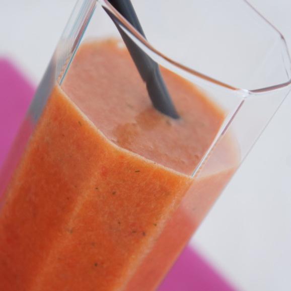 Uma vez que tiver coberto os vegetais com a água, você deverá deixá-los no fogo uns 20 minutos, aproximadamente; aumente para fogo médio para que ferva. Após este tempo, você verá que a sopa de tomate já adquiriu o tom avermelhado tão característico deste prato tradicional. Apague o fogo, deixe amornar um pouco e bata tudo para conseguir uma textura cremosa e lisa.