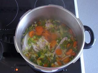 A seguir, acrescente o resto das verduras à panela e deixe cozinharem até ficarem prontas, mais ou menos durante 1 hora. Se necessário, acrescente mais água à panela.
