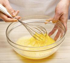 A seguir, incorpore o açúcar aos ovos e bata durante uns minutos. Deverá obter uma mistura espumosa. Quando observar que já conseguiu, poderá continuar com o passo seguinte.
