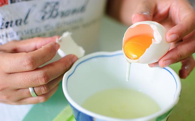 Quebre 2 ovos em uma xícara pequena e bata até que estejam bem misturados. Depois, verta os ovos batidos na frigideira.