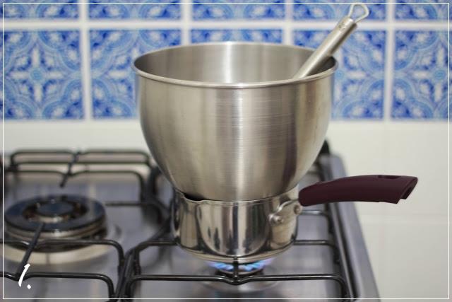 Coloque o preparado em uma panela em banho-maria e deixe cozinhar durante cerca de 15 minutos.