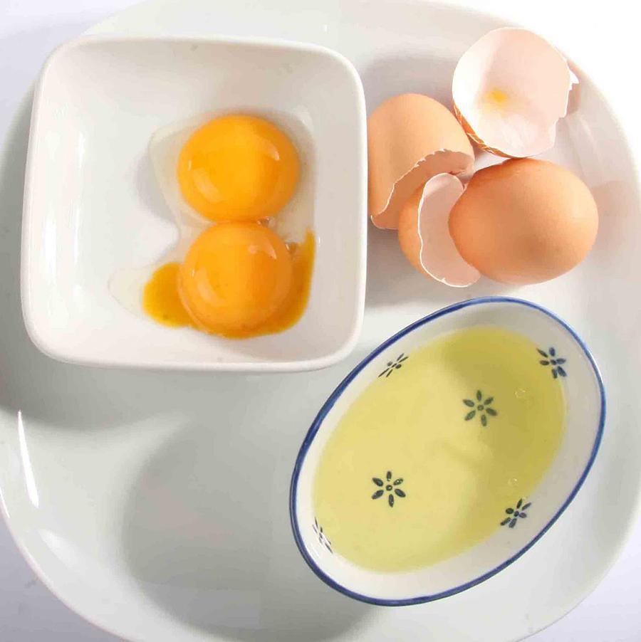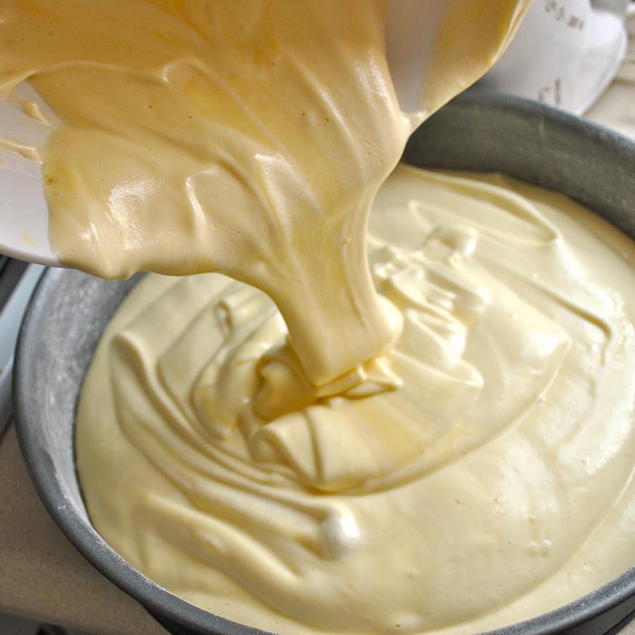 Agora, separe as gemas das claras dos 5 ovos. Feito isto, começaremos batendo as gemas com a metade do açúcar. Bata tudo até obter um creme leve. Depois, adicione o leite integral, a farinha de trigo previamente peneirada, o fermento e a essência de baunilha e continue mexendo até misturar todos os ingredientes.