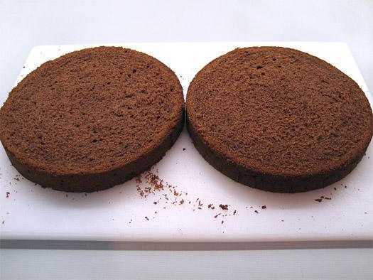 Quando o bolo de chocolate estiver pronto, retire do forno e deixe esfriar. Quando estiver resfriado, corte-o ao meio com uma faca. Tente cortá-lo em linha reta e uniforme. Quando você tiver as duas metades do bolo, unte uma delas com uma camada de geleia de damasco. Esta etapa é fundamental para conseguir um autêntico bolo Sacher. Feche o bolo e reserve.