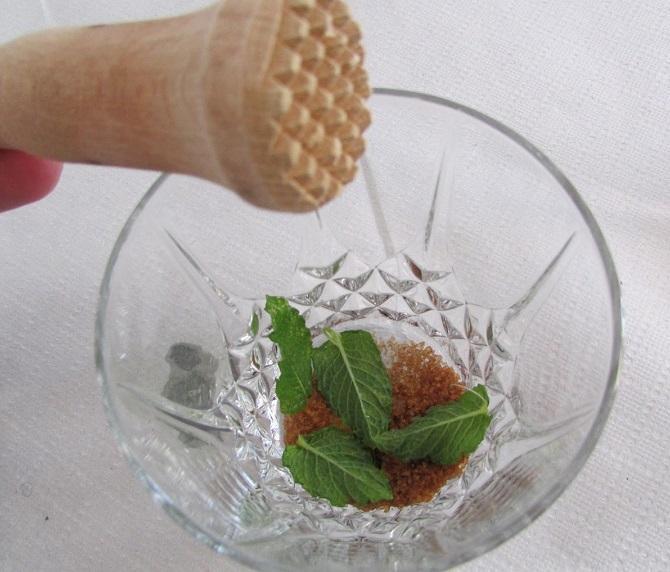 O primeiro passo para fazer este delicioso mojito sem álcool é lavar as folhas de hortelã ou menta (o que preferir) e introduzir em um recipiente junto ao açúcar mascavo. Agora, usando um pilão, amasse levemente os dois ingredientes para que seus sabores comecem a se misturar.