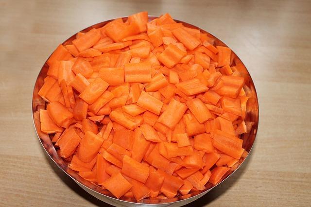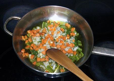 Também deverá lavar, descascar e picar as cenouras; uma vez que a cebola da frigideira esteja transparente -sem chegar a dourar- jogue a cenoura picada para que vá cozinhando.