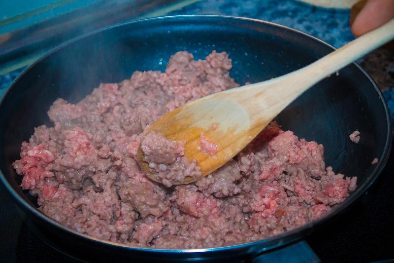Quanto à carne para acrescentar ao refogado para espaguete, pode escolher a que mais gostar, desde carne picada -de porco, bovina, mista, etc.- até pedaços de carne magra, passando por salsichas esmiuçadas. Ainda que possa jogá-la devidamente temperada com sal e pimenta diretamente na frigideira dos vegetais para cozinhá-la, recomendamos a você que antes a passe por outra frigideira com azeite; deste modo evitará que solte água e possa estragar o molho.