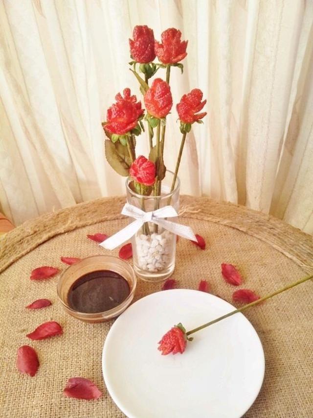 Simples assim! Em poucos minutos terá conseguido fazer uma flor com morangos bonita, deliciosa e super-romântica.