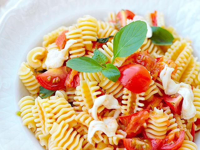 Outra das variações que você pode fazer da salada caprese é adicionando macarrão. Para fazer este prato você só precisa adicionar um passo, que consiste em ferver com água e sal grosso e cozinhar o macarrão. Depois de pronto, escorra o macarrão e passe na água fria. Por último, é só montar a sua salada de macarrão caprese colocando o macarrão em uma travessa e, por cima os restantes ingredientes, o tomate, a mussarela e o manjericão. Tempere com sal e pimenta a gosto e sirva.
