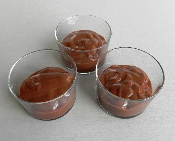 Coloque a mistura do copo da batedeira em um recipiente e introduza-a no microondas por 5 minutos aproximadamente em potência máxima. Quando estiver pronto, deve voltar a bater a mistura com a batedeira para que não fique ressecada, faça-o até que obtenha uma textura cremosa. Depois, volte a esquentar no microondas por 2 minutos e ao retirá-la, bata de novo e já poderá acrescentar o chocolate nas taças ou copos para servir esta deliciosa sobremesa.