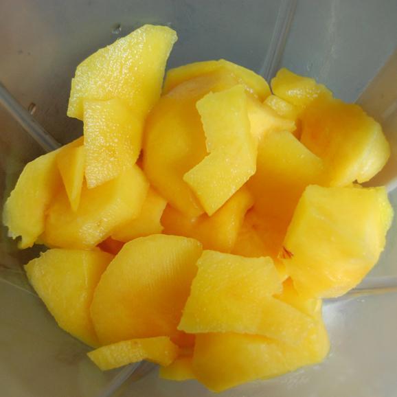 O primeiro que vamos fazer para elaborar a vitamina é descascar, lavar e cortar os pêssegos. É recomendável que corte em pedaços pequenos, assim será bem mais fácil triturá-los mais adiante.