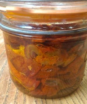 Quando os tomates já estiverem secos, retire do forno, coloque em um recipiente com tampa hermética e mantenha-os aí de seis a oito horas (ou toda a noite). Pôr em azeite para que se conservem perfeitamente. Também podemos acrescentar um pouco de salsa ou alho para dar um toque diferente aos tomates desidratados.